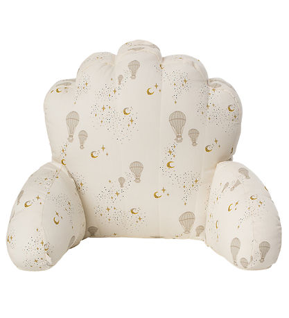 Pretty That's Mine pram cushion in cream white with an allover print of hot air balloons, moons and stars in beige and colours.