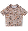 That's Mine swim blouse has short sleeves and a high neck edge. There are narrow edges in the arm and waist openings, and the swim tops is in a nice, smooth-woven quality.
