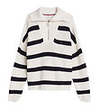 Beautiful Tommy Hilfiger blouse with long sleeves in a delicious light beige colour with blue stripes in a delicious knitted quality. The Blouse has a stylish look with button detailing at the neck and adds a sporty element to any wardrobe.