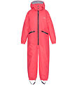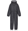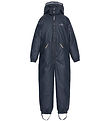 The Ver de Terre snowsuit opens at the front with two zippers with an internal wind pole, and the suit opens from the neck opening down each trouser leg. There is an elastic edge in the back, and on the inside there is a large name tag. The suit is lined with a check cotton lining, and on the front there is a reflective print of the Ver de Terre logo.