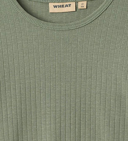 Elegant Wheat blouse in dusty green with ribbed structure. The Blouse has a round neckline and long sleeves. It is made of a soft cotton quality.