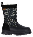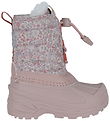 Cute Wheat winter boots in brown leather on the front of the foot and the shaft is made of pink textile with a fine flower print in pink shades. The Winter boots have details in pink suede.