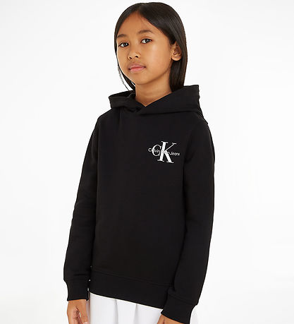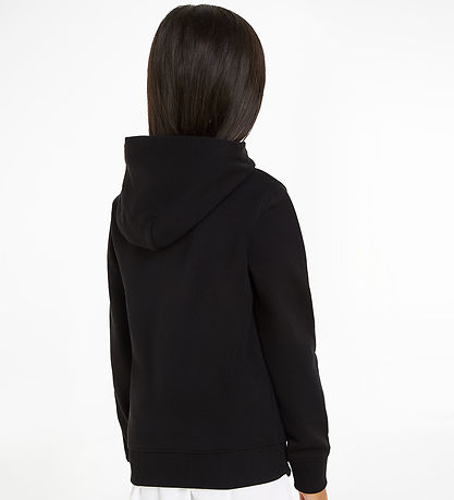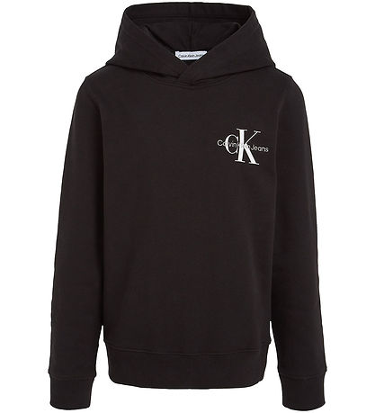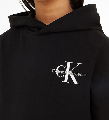 Smart Calvin Klein hoodie in black sweat, with a logo print on the left chest in white and grey.