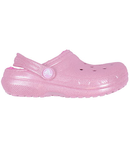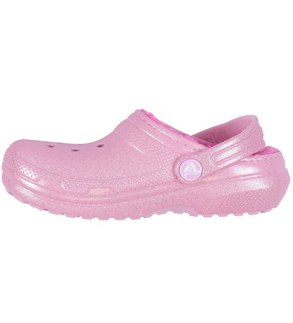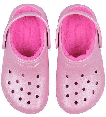 Beautiful Crocs sandals in pink with glitter. Inside, there is a soft, pink plush lining that keeps the feet warm.