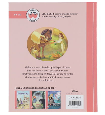 The book, Forlaget Carlsen, features a story from the Disney film universe Beauty and the Beast and is about Belle's horse Philippe, who misses a friend. The Book is hardcover.