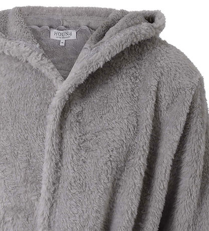 The Hound bathrobe has long sleeves and a Fast hood. The Bathrobe closes with a belt, and there are two large pockets at the front.