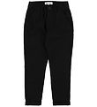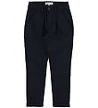 The trousers have long legs with smart straps around the ankles and are opened at the front with a button and zipper. At the front are two slanted, open pockets. At the back, there are two decorative pockets. On the inside, the trousers have a practical, adjustable elastic around the waist and belt straps on the outside.