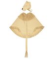 The Meri Meri coat closes at the front under the chin with a push-botton. The cape consists of four layers, where the three outer layers consist of tulle, while the inner layer consists of tightly woven fabric. The wand's ribbon creates movements that will make it appear as if the wand is sending out a glow of magic when the kid uses it. The crown is placed under the chin with an elasticband.