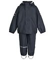 Smart Mikk-Line rainwear consisting of a rain jacket and a pair of rain pants in plain, dusty green PU.