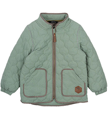 Cool Mikk-Line thermo jacket with checs in green shades and brown contrasting edges. The Thermo jacket has a wavy, quilted structure.