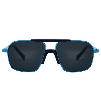 Beautiful Mokki sunglasses with light blue and navy frame and black spectacle lenses.