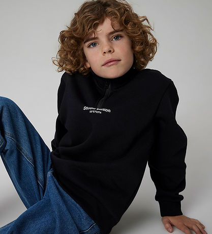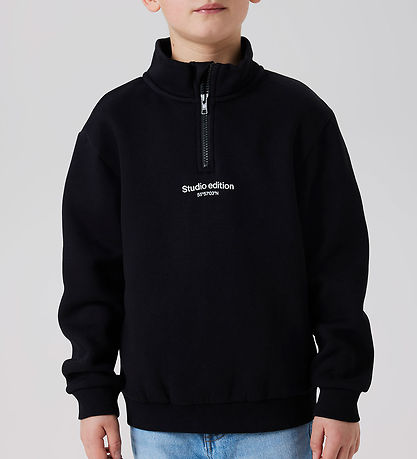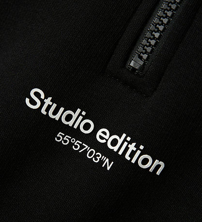 Beautiful Name It sweatshirt in black, with a practical zipper at the neck, which provides flexibility when dressing. On the front there is a minimalist white print with the text "Studio edition". The Sweatshirt has long sleeves, and both the wrists and the waist are finished with a wide ribbed edge, which ensures a good fit.