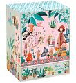 Nice Petit Monkey jewelry box in rose with flower vines in rose and green together with animals of the forest. On the lid there are brown tree trunks with lots of cute animals.