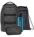 The Satch school backpack has a completely firm bottom and back, which provides ergonomic support. The back can also be adjusted according to the kid's height, so that the bag fits perfectly, while the school backpack grows with the kid and can be used for many years. There are padded shoulder straps which can be adjusted in length, and they can also be adjusted in relation to how high up on the back of the bag they should sit. In addition, there is an adjustable chest strap and a hip belt, which can be removed if desired.