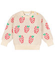The New blouse has long sleeves and a narrow edge in the neck opening, as well as two push buttons at the left shoulder so that the blouse can be opens.