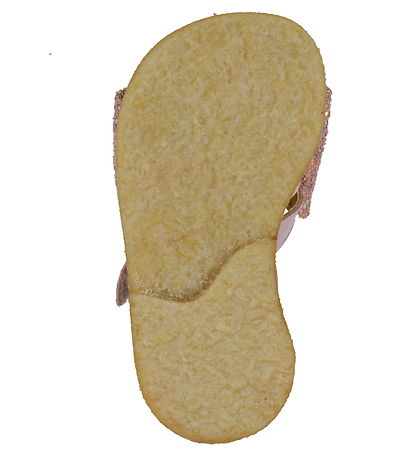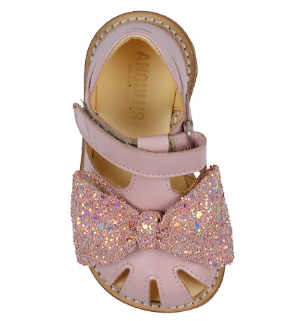 Beautiful Angulus sandals in pink leather with a large bow with pink glitter above the toes.