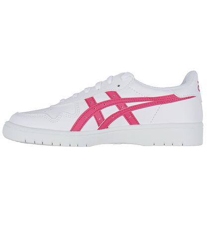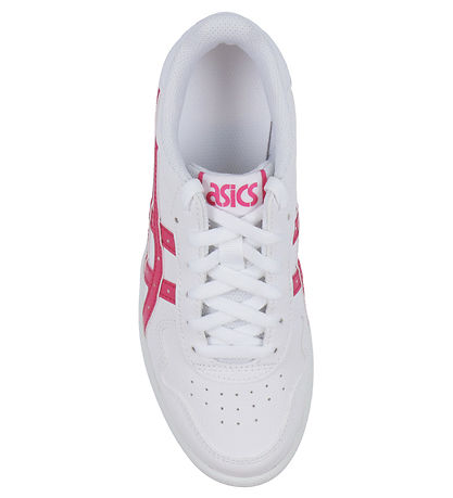 Beautiful Asics shoes in white, imitation leather with in pink logos on the sides.