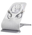 The Babymoov bouncer has a quilted 3-point harness that fits the baby, while making it easy to get the baby into the harness. There is a cushion at the head that can be adjusted in height as the kid grows.