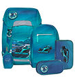 Cool Beckmann school bag set in shades of blue, and on the front there is a print with whales.