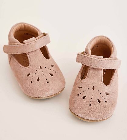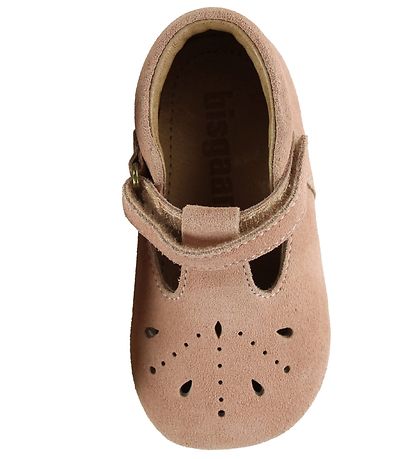 Super cute Bisgaard ballerina slippers in rose leather with decorative holes in the surface.
