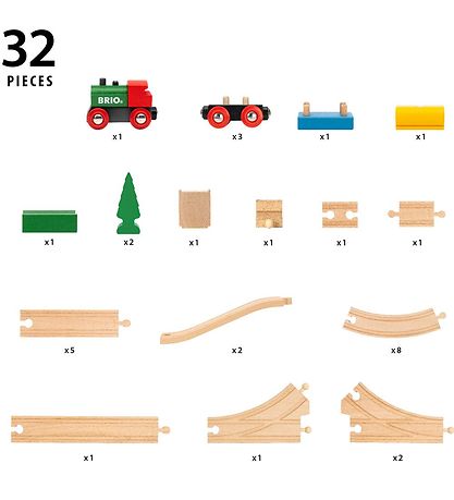 Fun BRIO railway set consisting of 32 different parts in the form of the following: