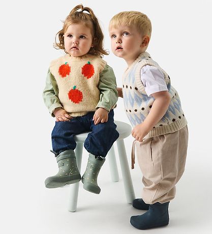 The Bundgaard rubber boots have a medium-high shaft that goes over the ankles. They have a wide textile edge that can be tightened with a lace at the top so that cold air does not get in. The inside has green textile and removable insoles. The Rubber boots have a soft rubber outsole with a tread pattern under the bottom.