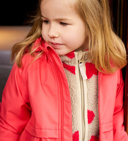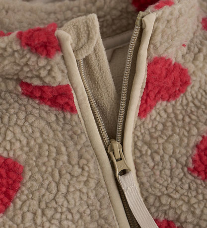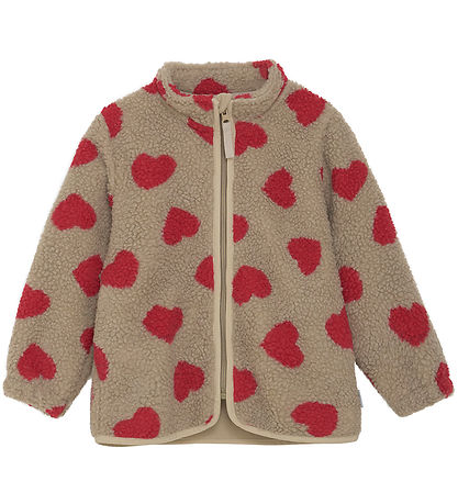 Lovely CeLaVi fleece jacket made of light brown teddy fleece with beautiful red hearts all over.