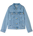 The Copenhagen Colors denim jacket has a turn-down collar and long sleeves with elastic edge and slightly puffed shoulders. The denim jacket opens at the front with hidden, continuous push buttons. On the front it has two large, distinctive open pockets.