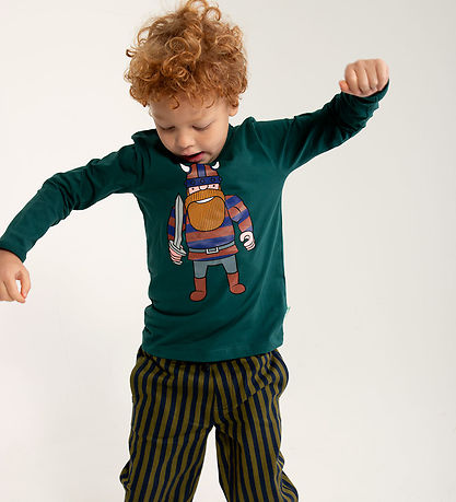 Stylish Danefæ trousers in a nice green and navy striped combination. In addition, the trousers have useful pockets on the side and at the back. The Trousers have an elasticated waist for comfort and a classic design that makes them a good choice for active kids.