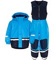 Beautiful Didriksons rainwear, consisting of a rain jacket and a pair of rain pants with suspenders in pink shades and purple details. The Rainwear is made of PU.