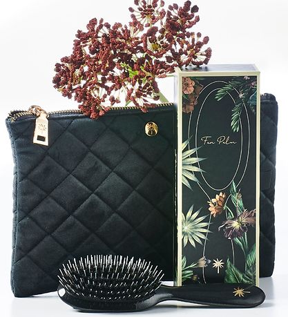 Beautiful Fan Palm hairbrush in black with a beautiful glitter in gold all over.
