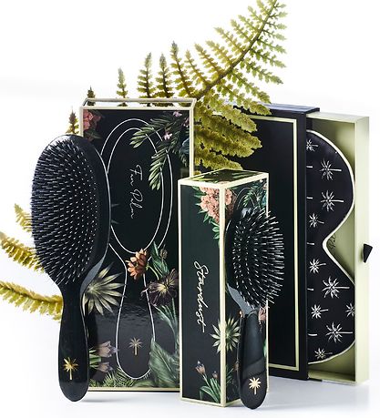The Fan Palm brush has soft and gentle wild boar hair as well as longer nylon brushes. The second helps to stimulate the scalp and help detangle the hair and the shorter wild boar hair helps to distribute the natural oils in the hair.