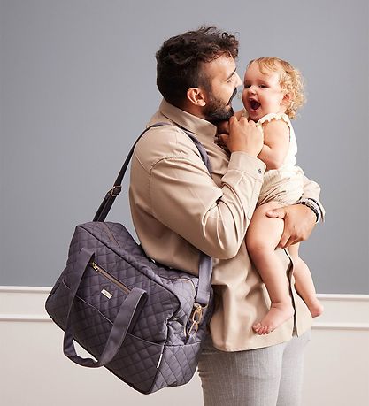 Smart Filibabba Changing bag in plain dusty blue with an all-over quilted structure.