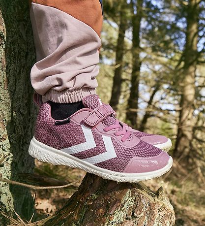 The Hummel sneakers have elastic bands over the instep, and they close with a practical Velcro strap. The shoes have a protective layer over the toes, and in the opening they are lightly padded. Inside, they are lined with textile, and at the bottom there is a soft and removable insole.