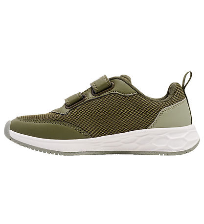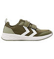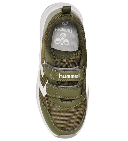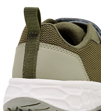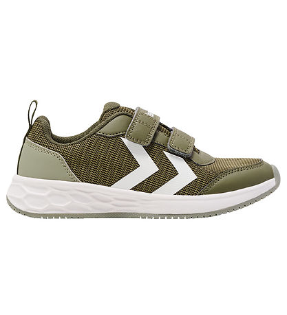 Cool Hummel shoe in military green mesh with imitation leather details in green, as well as the well-known Hummel shevrons on the outside in white.