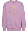 The Hummel sweatshirt has long sleeves and a round neckline, with a narrow ribbed hem. In the arm and waist openings there are wide ribbed edges and the sweatshirt is in a nice and stretchy cotton quality.