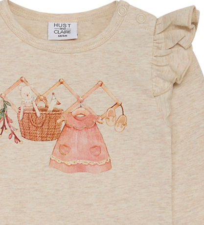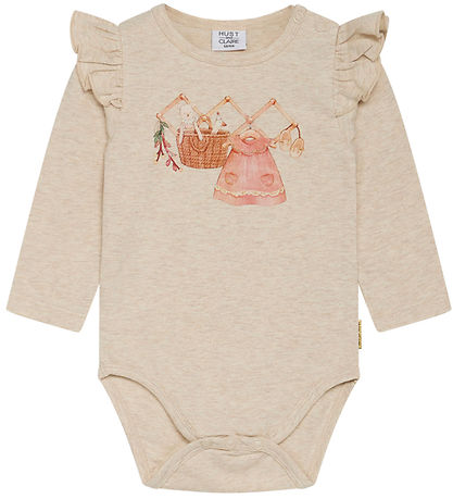 Nice Hust and Claire bodysuit in melange beige with cute print on the front in shades of pink, white, brown and yellow.
