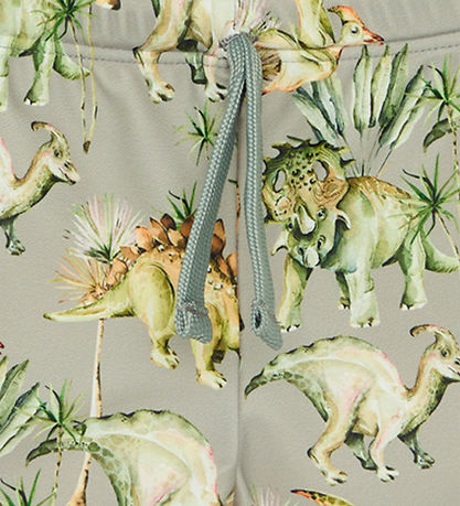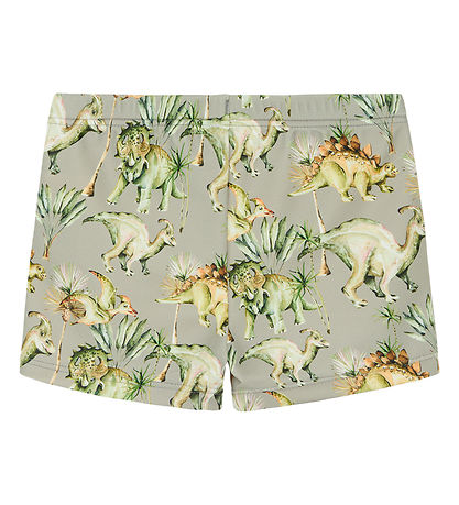 Nice Hust and Claire swim trunks in green with an allover print of different dinosaurs.