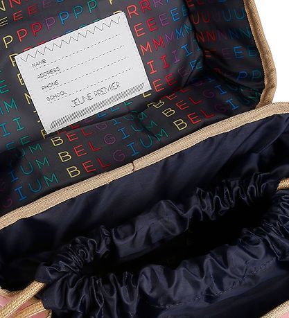 The Jeune Premier school backpack consists of a large compartment, which opens with a flap with a smart magnet on the front and two laces under the flap. In the large compartment, there are two open pockets against the back, for a laptop, tablet or similar, as well as a zipped pocket and a little, open pocket on the opposite side. On the right side of the school backpack there is a large, open pocket. Both on the front and on the left side, the school backpack has a large zipped pocket for various small items.
