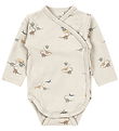 - 1 x cream white, long sleeved wrap bodysuit with an embroidered cherry and designed with practical ribbed edges and push buttons