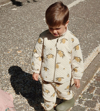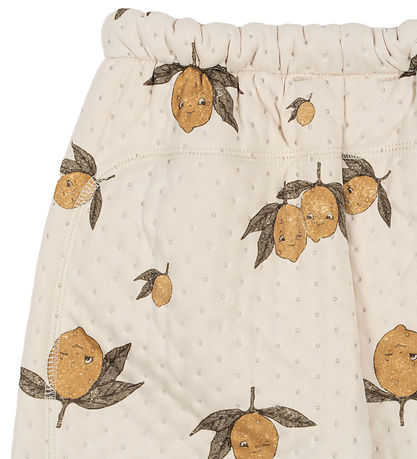Fine Konges Sløjd thermo trousers in cream white with an allover print of smiling lemons and an embossed structure of small dots.