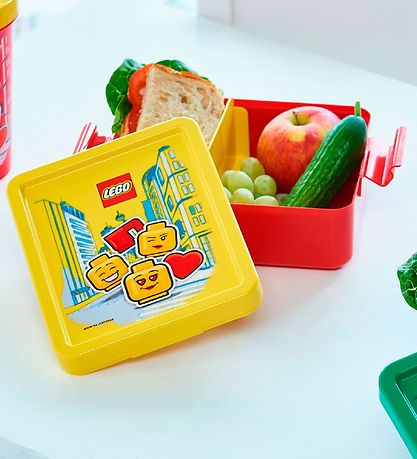 The LEGO® Storage lunchbox is square and has a lid that is Fast with two clips. Inside, the lunchbox has one large Rum with a practical compartment divider that can be placed wherever desired to keep the food separate.
