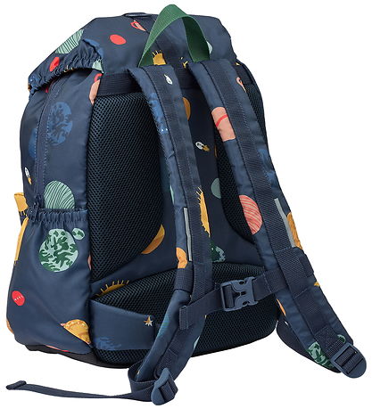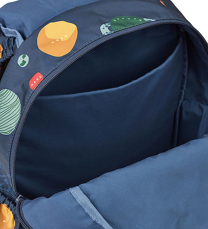 Smart Liewood school backpack in dark blue with a colorful print of planets.