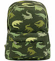 Smart A Little Lovely Company backpack in green, with print of animal and plants from the forest all over.