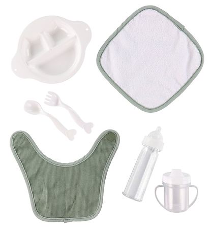 Fun MaMaMeMo doll dinner set that comes in a bag in mint green velvet. The Set consists of a total of 8 parts: