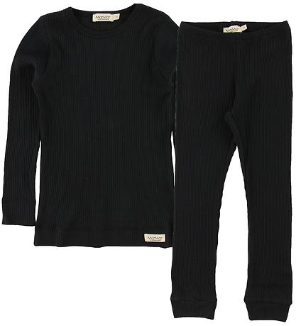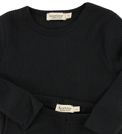 Lovely MarMar pyjama set in 2 parts with a nightgown and a pair of night trousers in black ribbed quality in a soft modal blend.