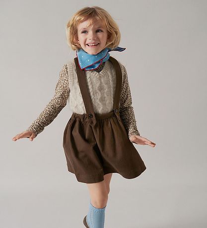 The MarMar lower part has a wide, adjustable elastic edge in the back, and underneath the skirt falls with a good width. the skirt has beautiful suspenders with a cross on the back, and they can be adjusted in length with a button. The braces are fastened with buttons, so you can take them off if you wish.