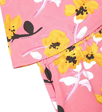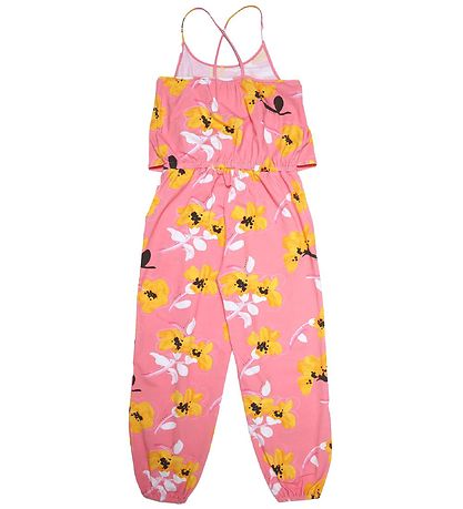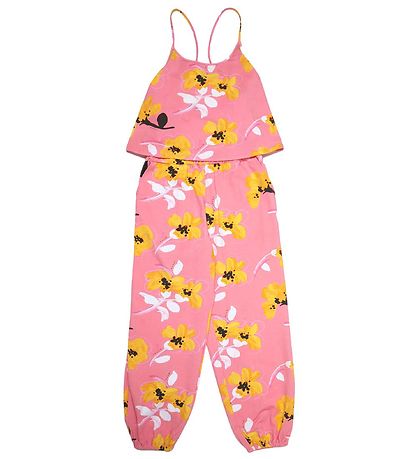 Nice Marni jumpsuit in pink with a print of large, yellow flowers with white stems and leaves.