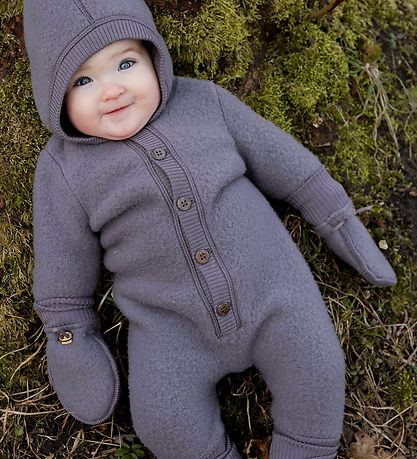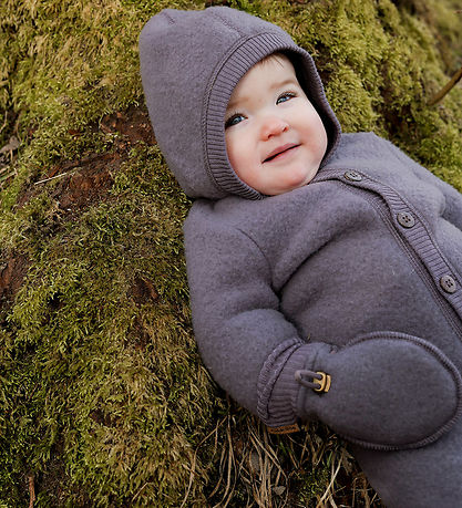 Beautiful Mikk-Line mittens made of felted merino wool in dark, dusty purple.