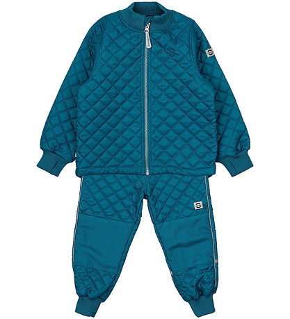 Lovely Mikk-Line thermo set consisting of a thermo jacket and a pair of thermo trousers in blue with a quilted structure.